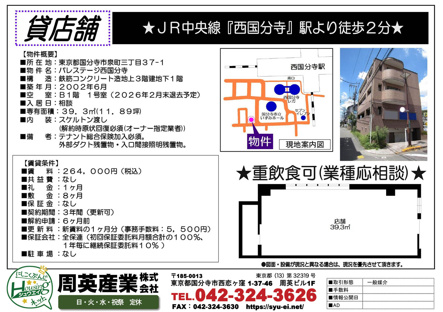 西国分寺・国分寺周辺の売買物件・賃貸マンション・賃貸アパート・月極駐車場を探すならシュウエイネット