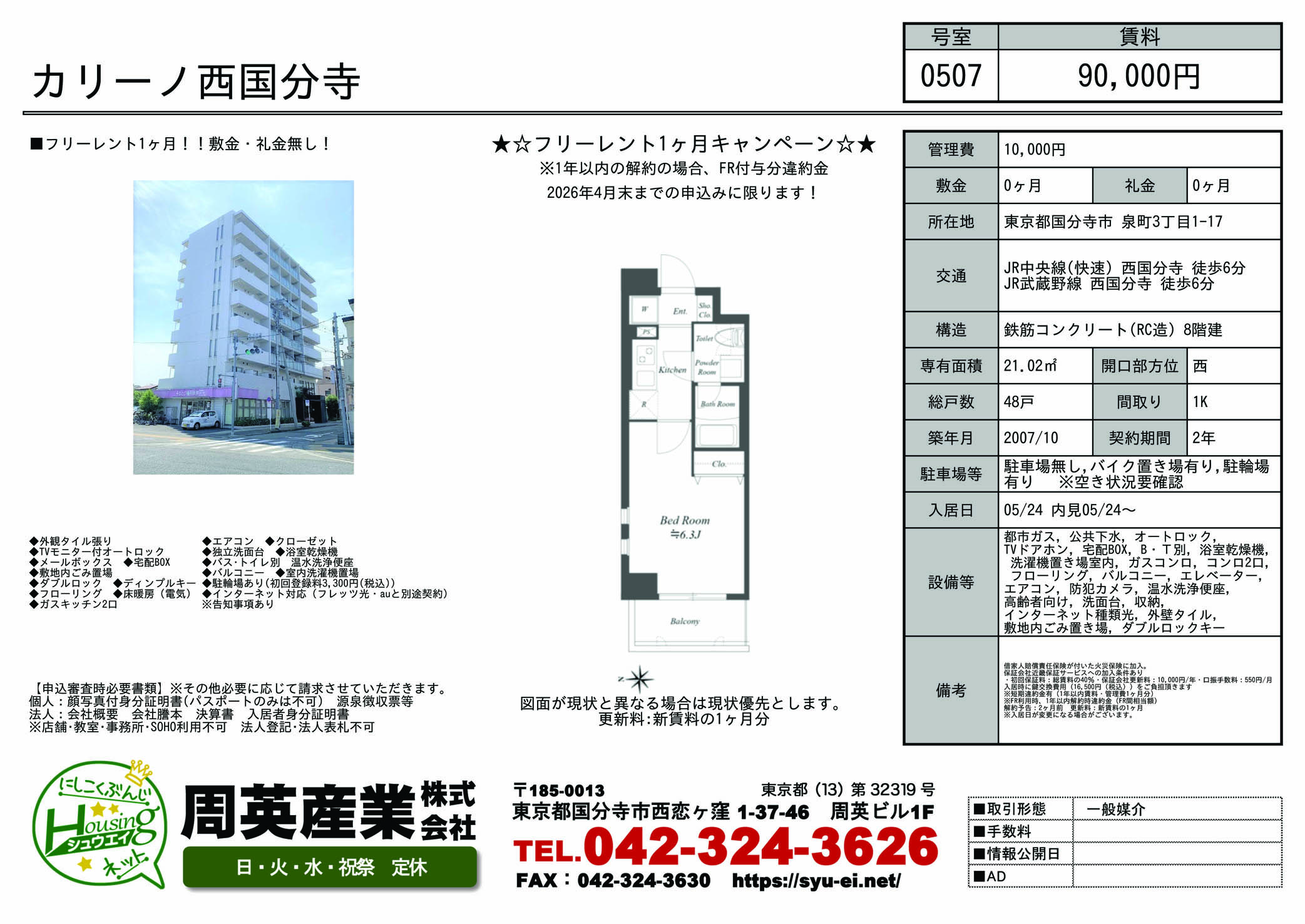 - JR中央線西国分寺駅 徒歩7分