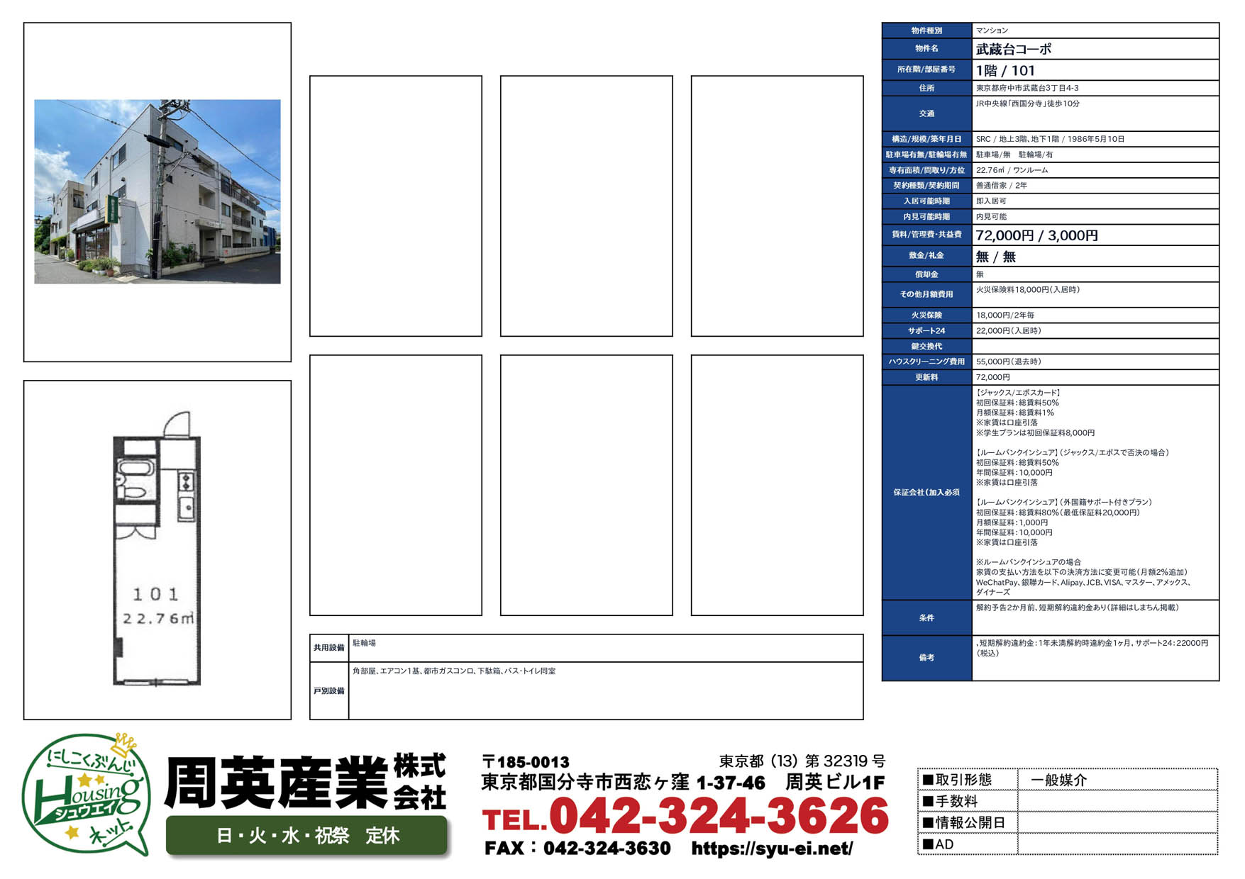 | 所在地 | 東京都府中市武蔵台3丁目 武蔵台コーポ |