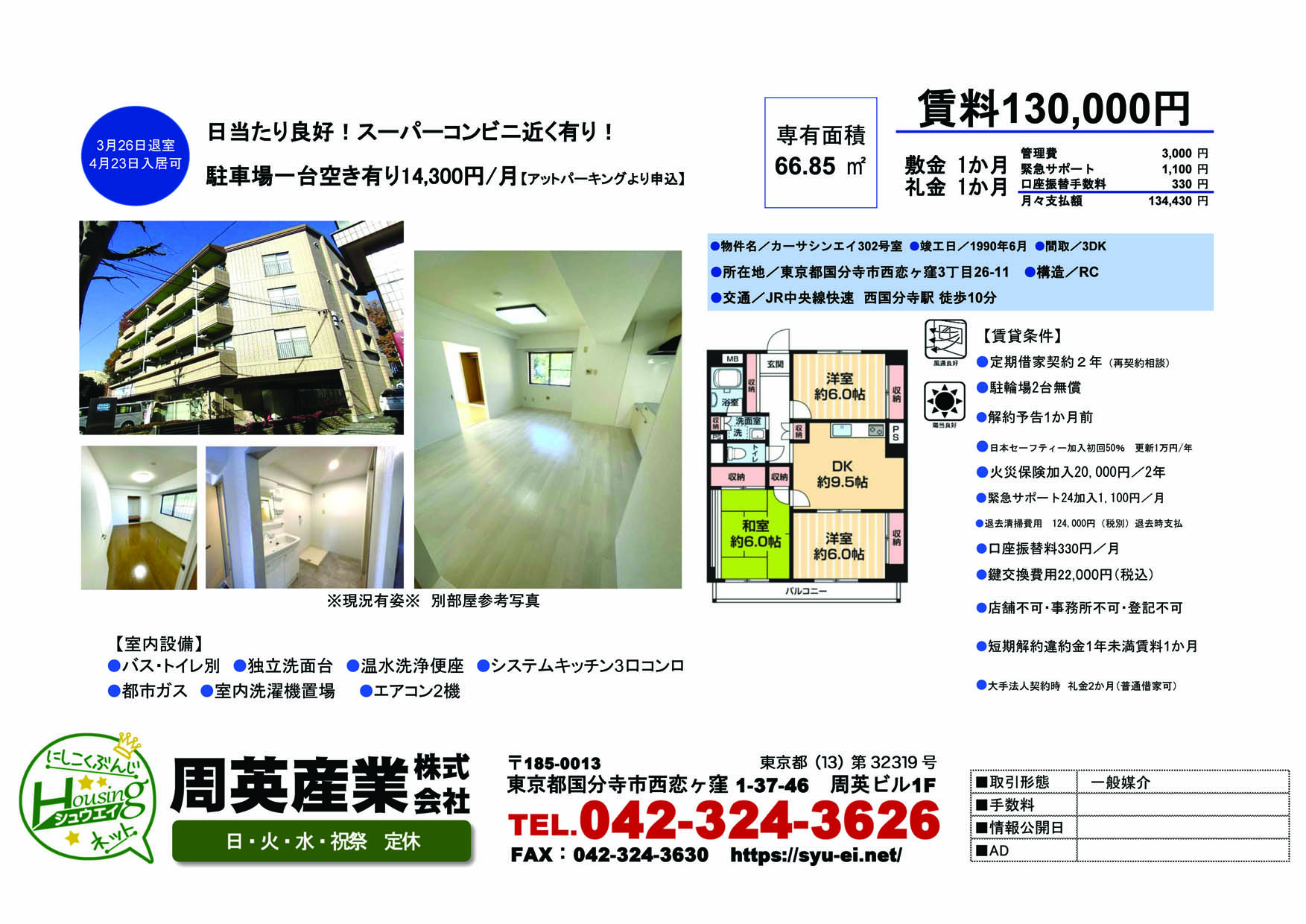 | 交通 | JR中央線西国分寺駅 徒歩10分 JR武蔵野線西国分寺駅 徒歩10分 |