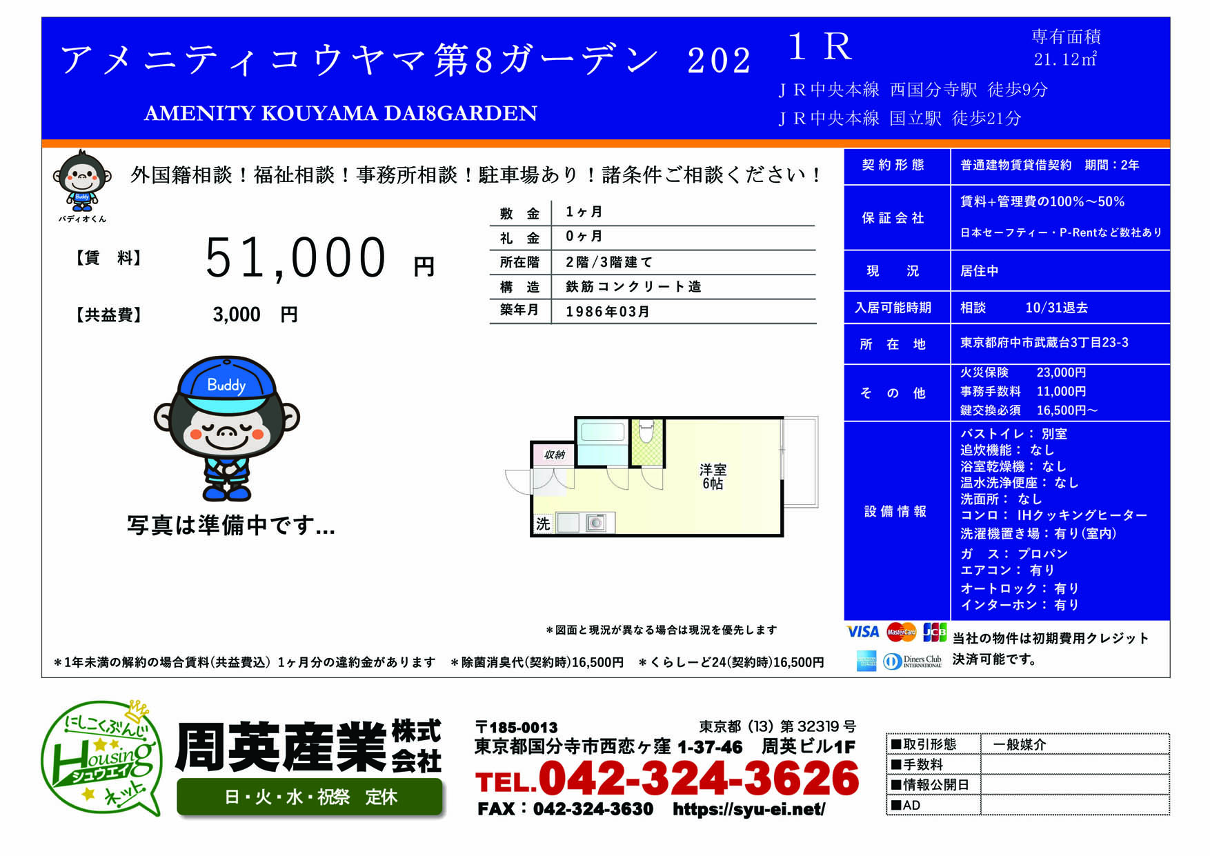 | 所在地 | 東京都府中市武蔵台3丁目 アメニティコウヤマ第8ガーデン |