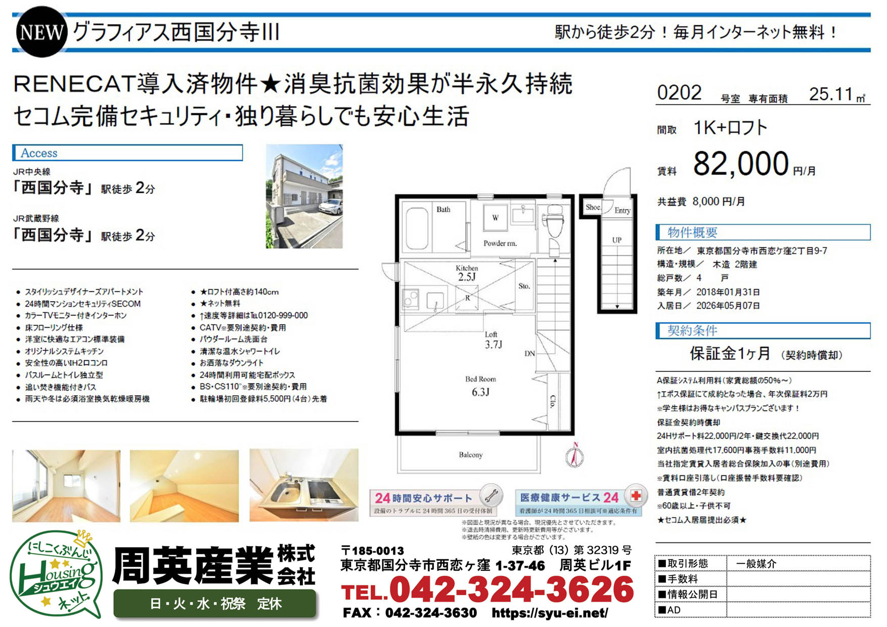 | 所在地 | 東京都国分寺市西恋ヶ窪2丁目 グラフィアス西国分寺Ⅲ |