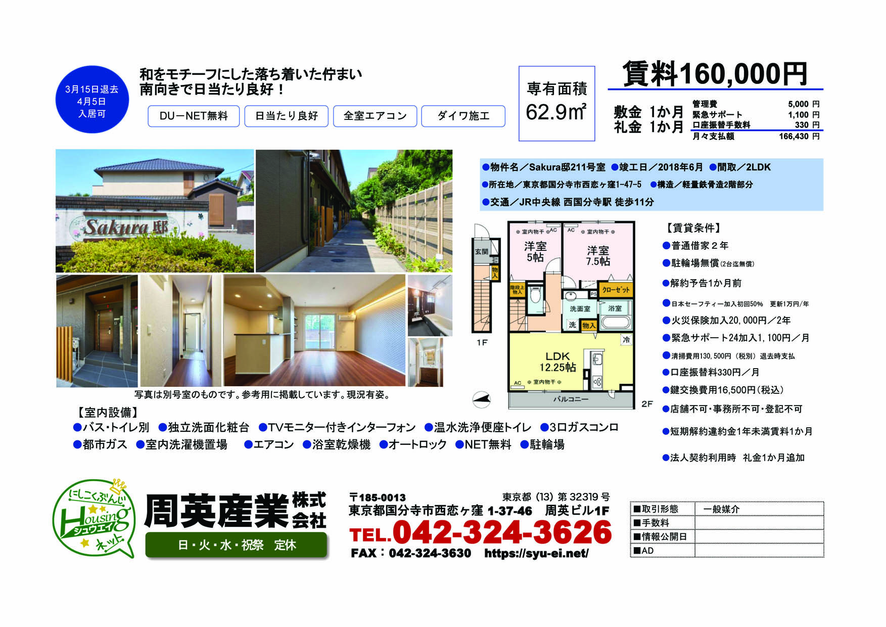 | 交通 | JR中央線西国分寺駅 徒歩11分 JR武蔵野線西国分寺駅 徒歩11分 |